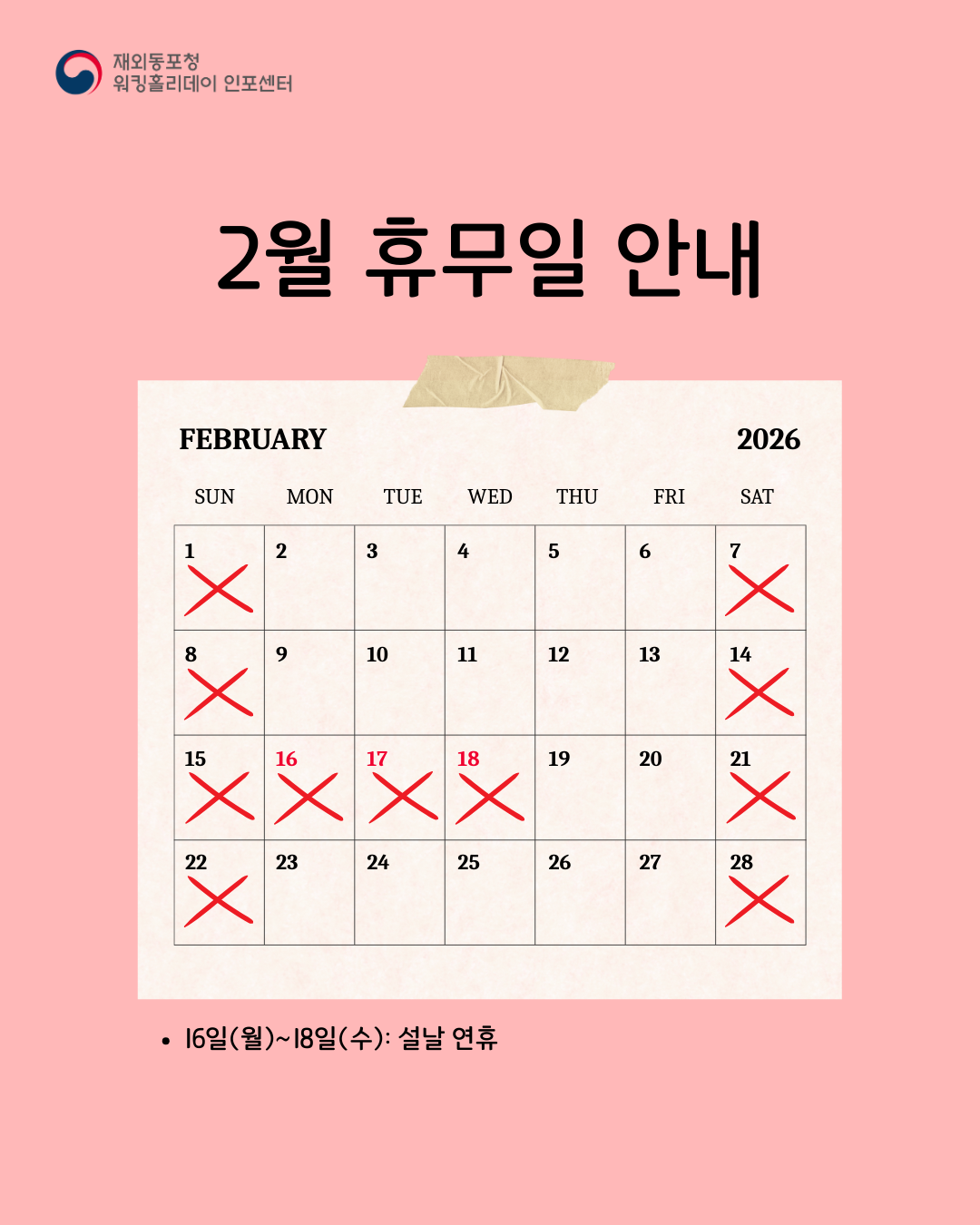 설연휴(2.16-18)기간은 인포센터 휴무입니다.