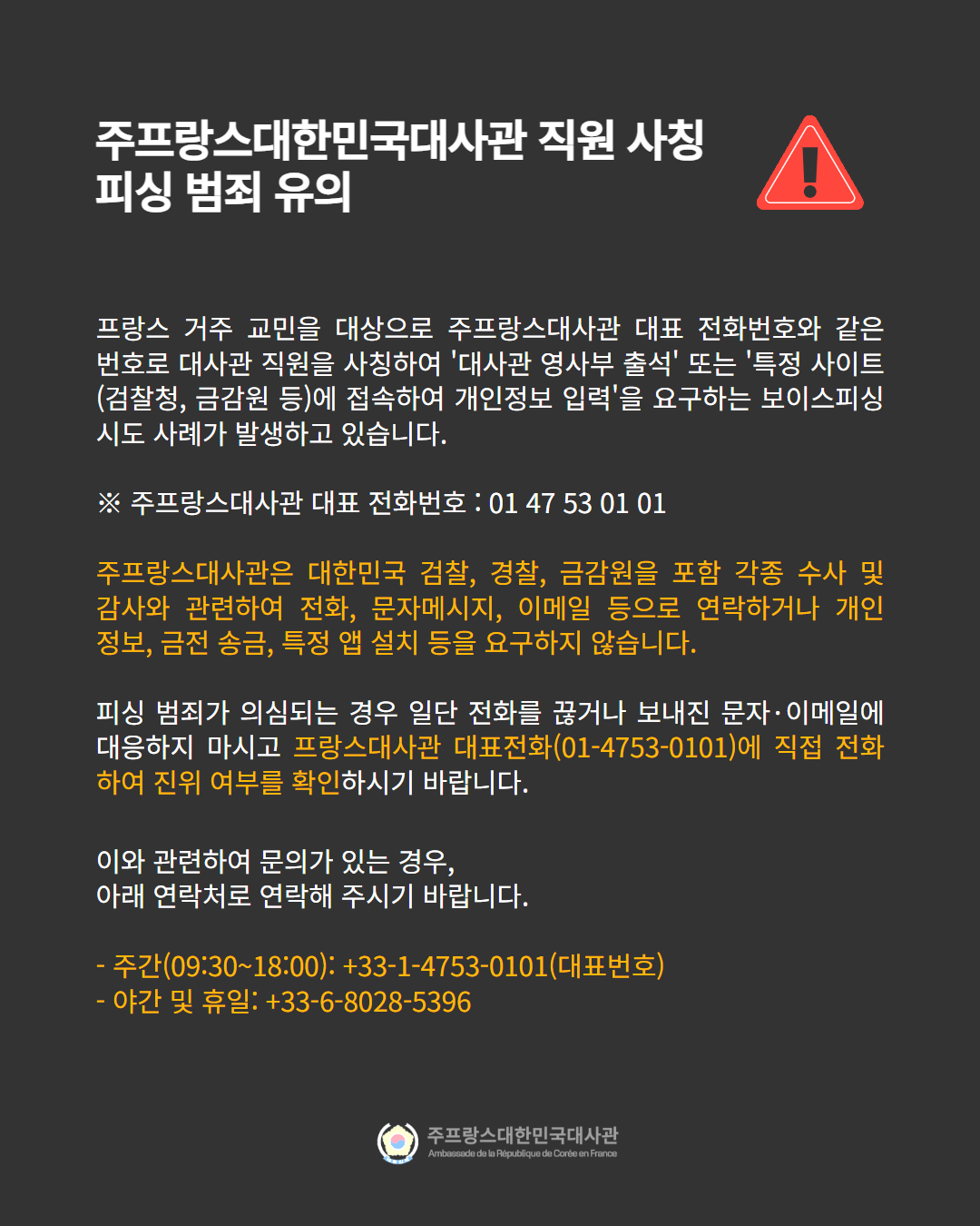 대사관 직원 사칭 피싱 범죄 유의