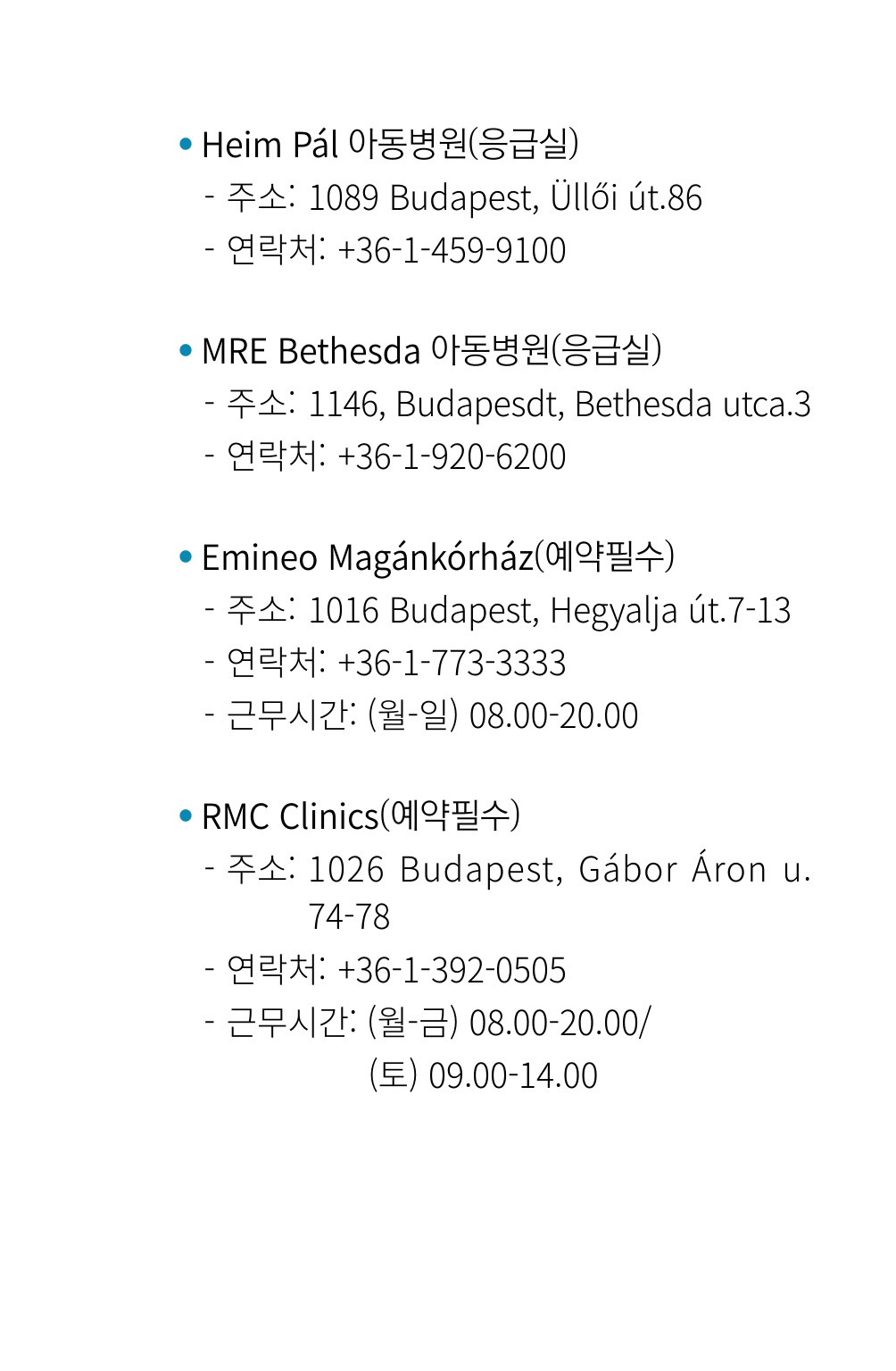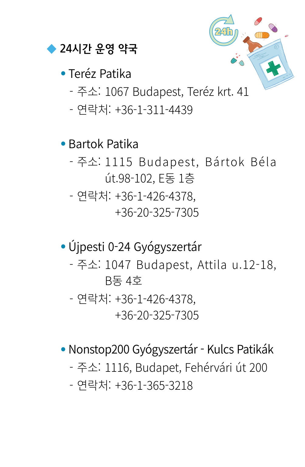 2026 헝가리 안전여행 가이드북-병원·24시간 약국 등